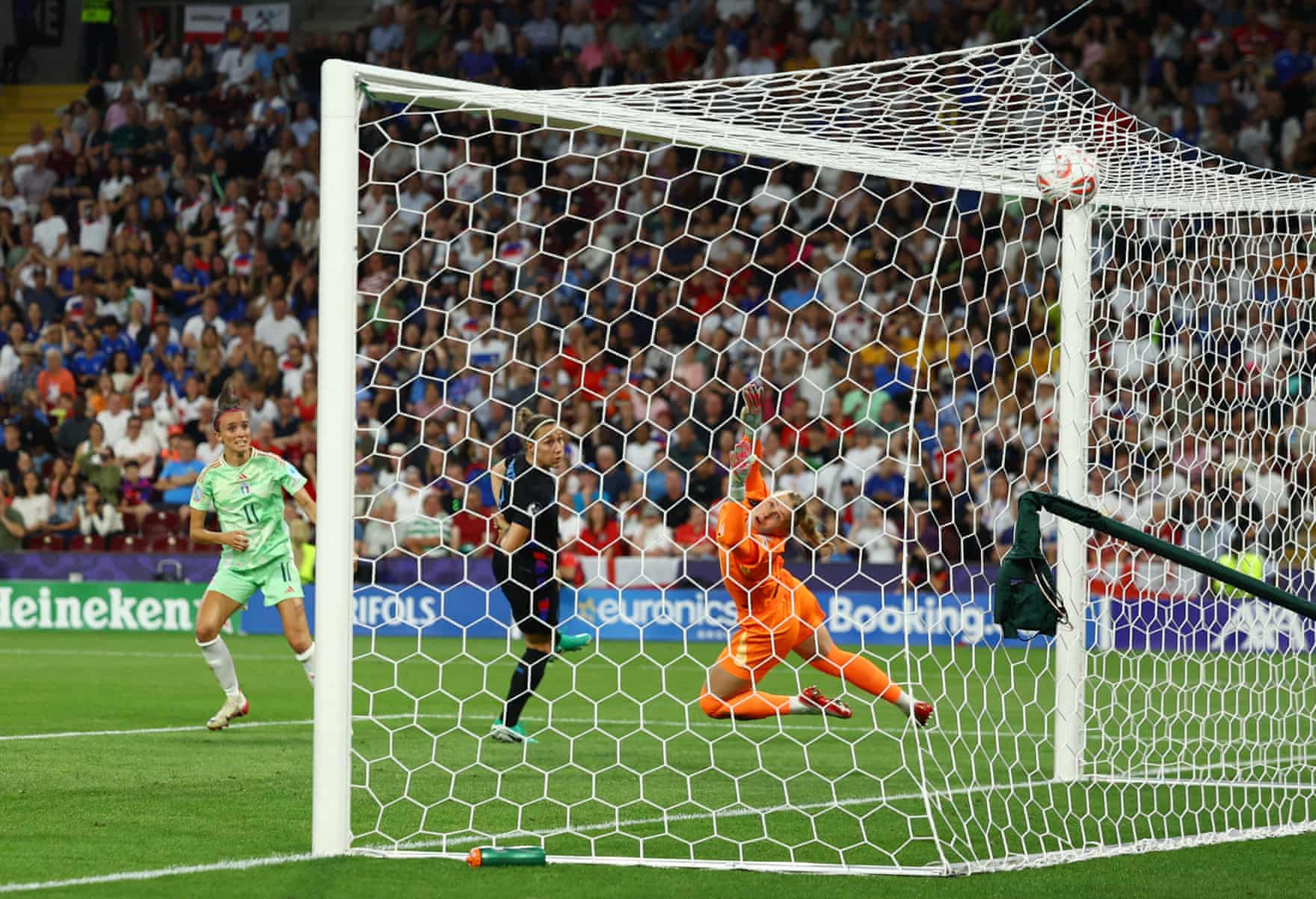 ประตูในครึ่งแรกของบาร์บาร่า โบนันเซียที่ยิงให้ทีมชาติอิตาลีดูเหมือนจะช่วยให้ทีมของอันเดรีย ซอนซินผ่านเข้ารอบชิงชนะเลิศได้เป็นครั้งแรกนับตั้งแต่ปี 1997 แต่ในนาทีสุดท้ายของช่วงทดเวลาบาดเจ็บ ดาวรุ่งวัย 19 ปีของอังกฤษก็ยิงประตูสำคัญลูกที่สองของเธอในทัวร์นาเมนต์นี้ เพื่อรักษาโอกาสการป้องกันแชมป์เอาไว้ ก่อนที่เคลลี่ ผู้ทำประตูชัยในช่วงต่อเวลาพิเศษของอังกฤษในรอบชิงชนะเลิศปี 2022จะมาทำประตูได้อีกครั้ง